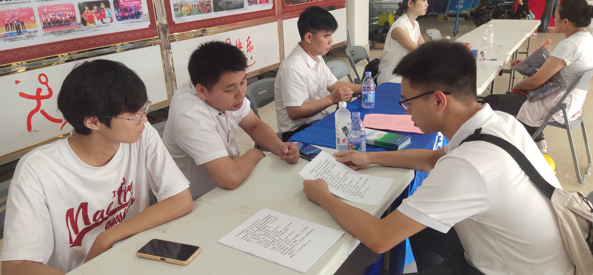 在现场,同学们积极投递求职材料,且部分同学已与用人单位达成了就业意向。