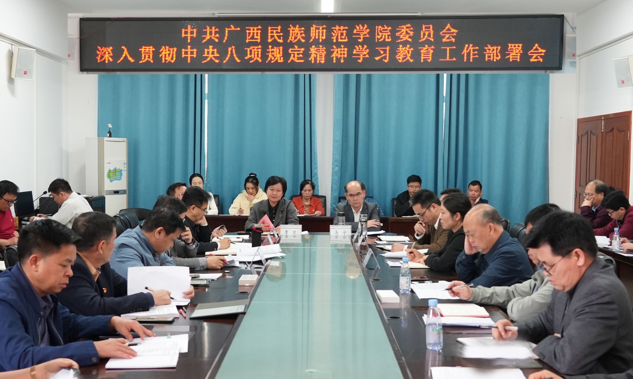 3月21日,我校召开党委常委会(扩大会),传达学习习近平总书记在云南考察时关于开展深入贯彻中央八项规定精神学习教育的重要讲话精神,和《中共中央办公厅关于在全党开展深入贯彻中央八项规定精神学习教育的通知》等上级关于学习教育的有关文件和会议精神,审议通过《中共广西民族师范学院委员会关于开展深入贯彻中央八项规定精神学习教育的实施方案》,正式启动学校深入贯彻中央八项规定精神学习教育。校党委书记曹迎主持并作动员讲话。