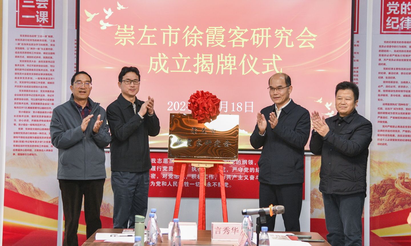 12月18日,崇左市徐霞客研究会成立揭牌仪式在广西民族师范学院崇善楼举行。崇左市委丁东弟、我校校长马宁、中国徐霞客研究会副会长陈庆江、崇左市徐霞客研究会会长李桂生共同为崇左市徐霞客研究会揭牌,标志着崇左市徐霞客研究开启新篇章。