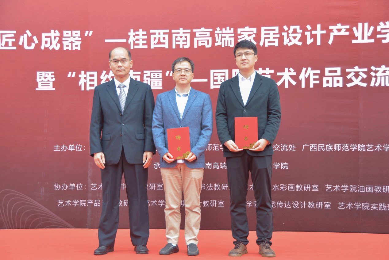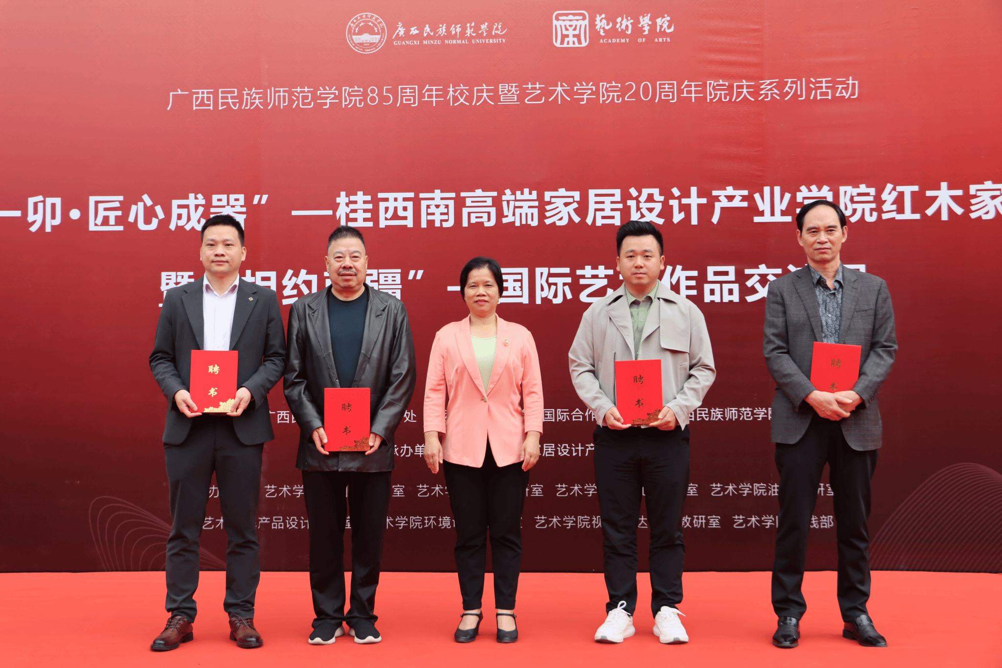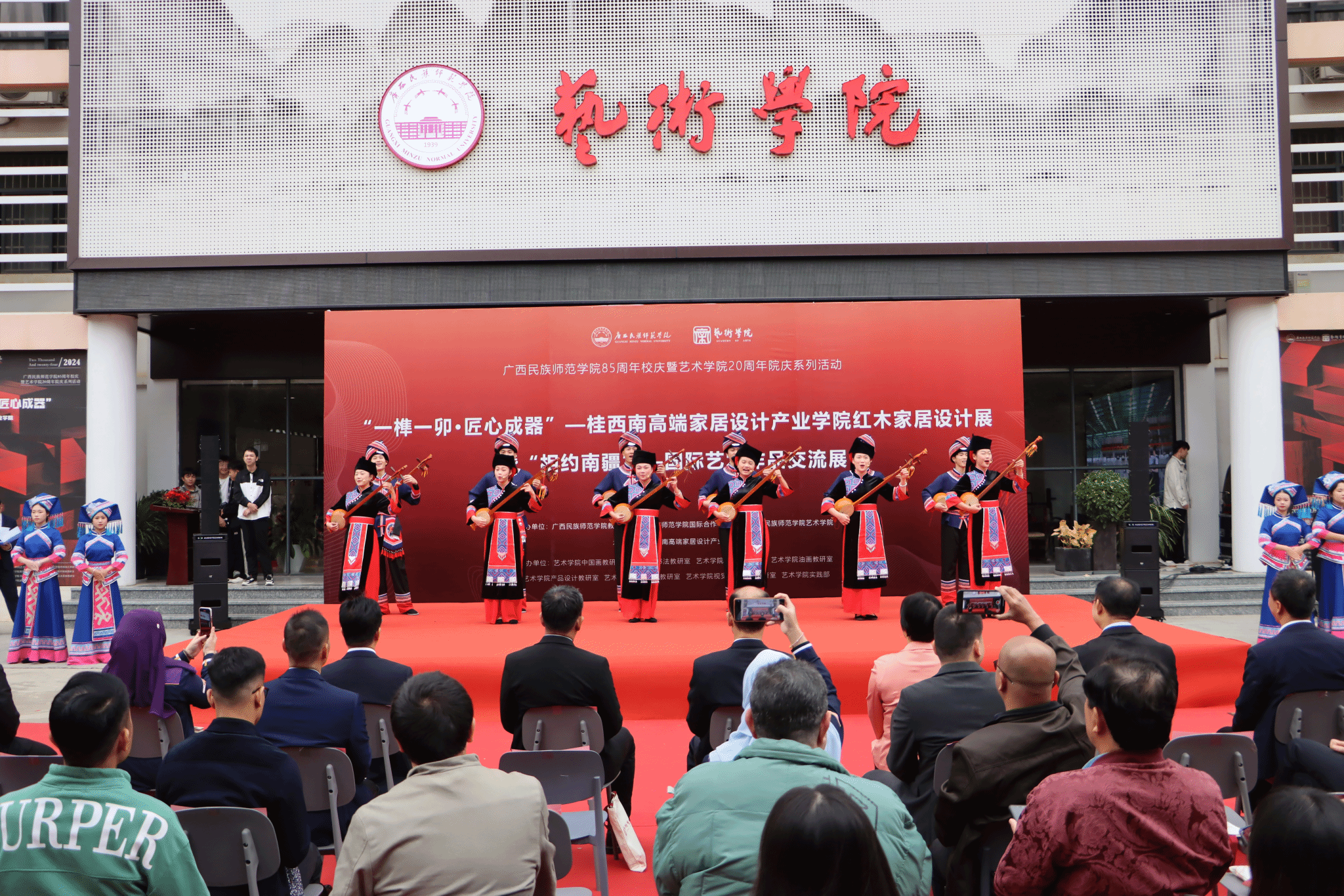 文化因交流而多彩,因互鉴而丰富。11月26日,我校举办了以“一榫一卯·匠心成器”为主题的国际艺术交流展活动。来自马来西亚玛拉工艺大学、泰国工商大学的师生,以及崇左市政协等相关部门、广西红木家具协会、红木企业相关领导嘉宾,和学校师生齐聚一堂,共同开启了一场丰富多彩的文化艺术之旅。校党委书记曹迎参加晚会活动,校长马宁参加开幕式并宣布活动开幕,玛拉工艺大学总校副校长路斯玛迪·安华、市政协副蒋京华、我校副校长郑振锋、韦茂斌参加相关活动。