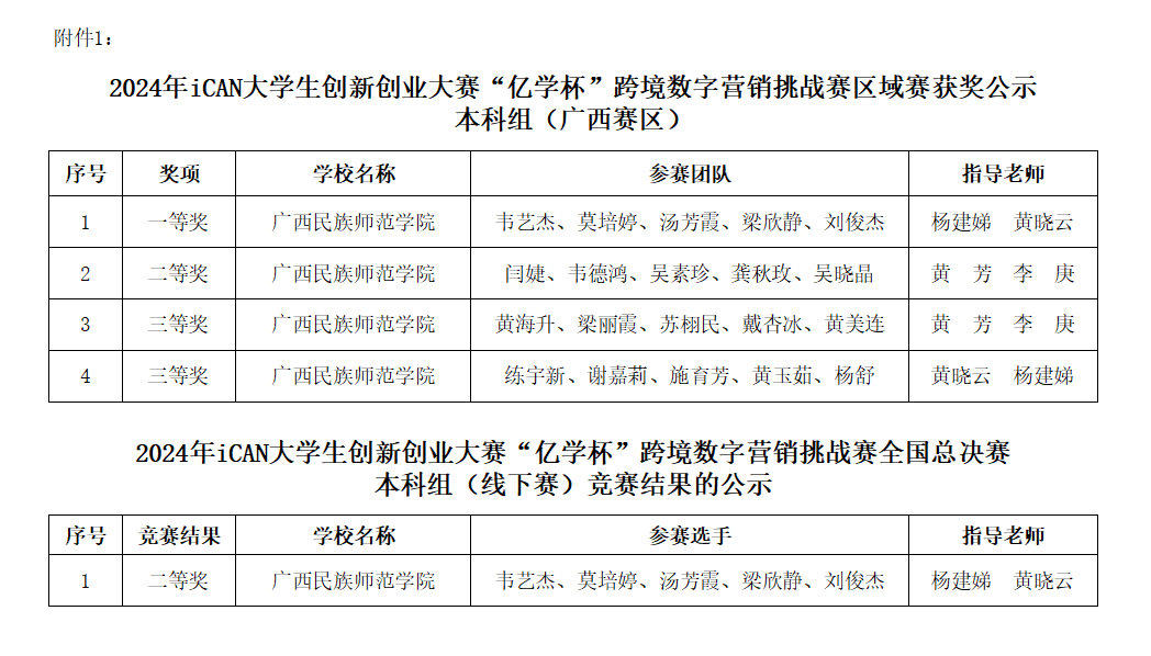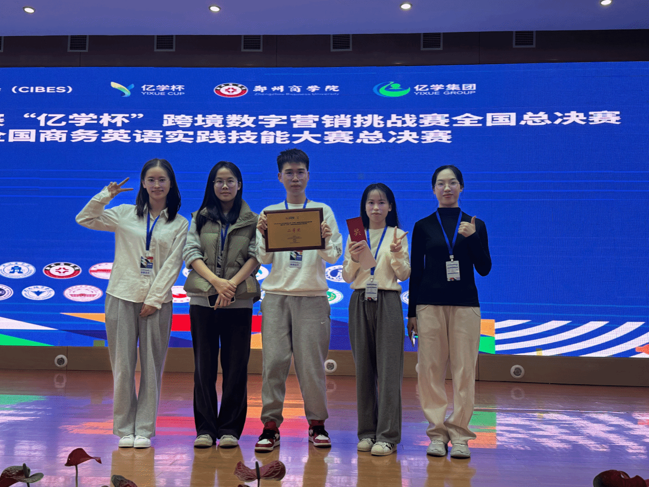 近日,2024年iCAN大学生创新创业大赛“亿学杯”跨境数字营销挑战赛全国总决赛暨第八届“亿学杯”全国商务英语实践技能大赛总决赛在河南巩义圆满落幕。经过激烈角逐,由我校外国语学院商务英语专业韦艺杰、莫培婷、汤芳霞、梁欣静、刘俊杰五名同学组成的参赛队伍荣获全国总决赛二等奖,实现我校在该赛事上的历史性突破。