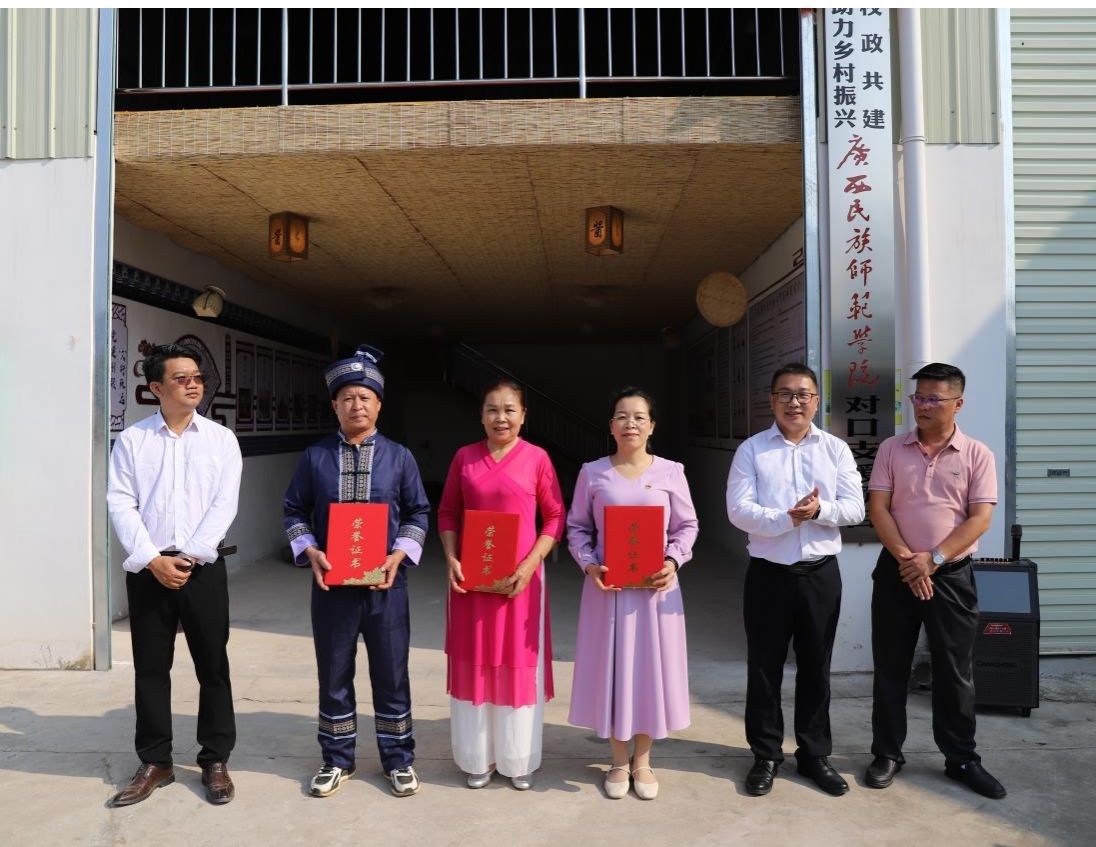 为了进一步深化校地合作,利用我校优势资源实施精准帮扶,助力乡村振兴,11月14日,我校在天等县上映乡举行“艾麦酱非遗传承工作室”揭牌仪式,校党委副书记韦永恒和天等县相关部门领导为工作室揭牌。该工作室是由我校和天等县上映乡联合建设,以传承非遗文化为主旨的研学机构和实践基地,对于弘扬优秀传统文化,持续推进非物质文化遗产保护传承具有重要意义。