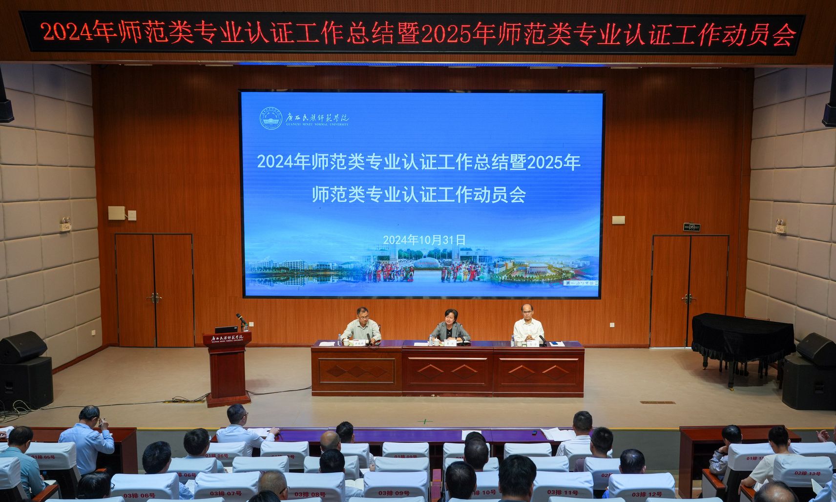 10月31日下午,我校于明德北楼116报告厅召开2024年师范类专业认证工作总结暨2025年师范类专业认证工作动员会,校党委书记曹迎主持会议,校长马宁、副校长郑振锋出席会议。