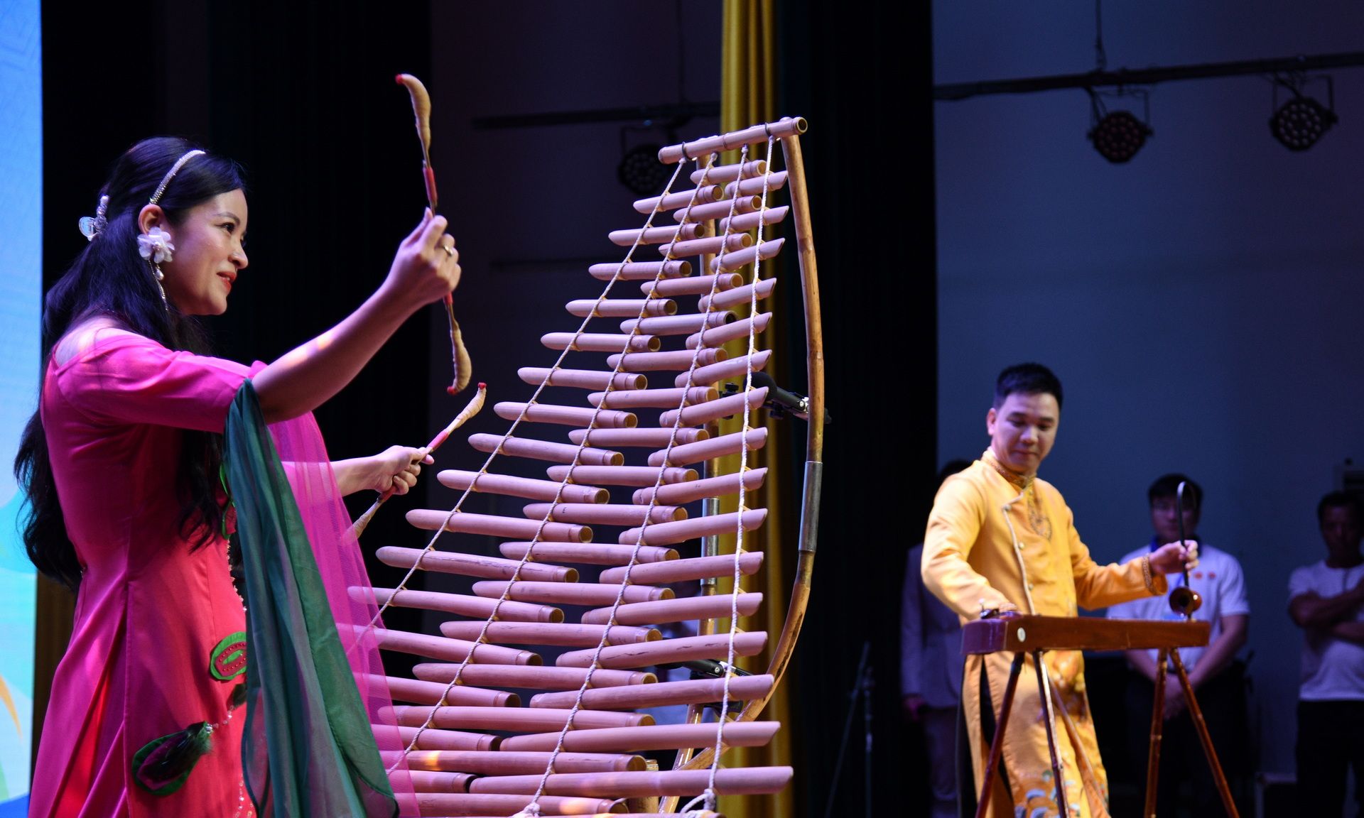 越南艺术家表演独弦琴与竹排琴二重奏《歌曲串烧“美好的一天”》
