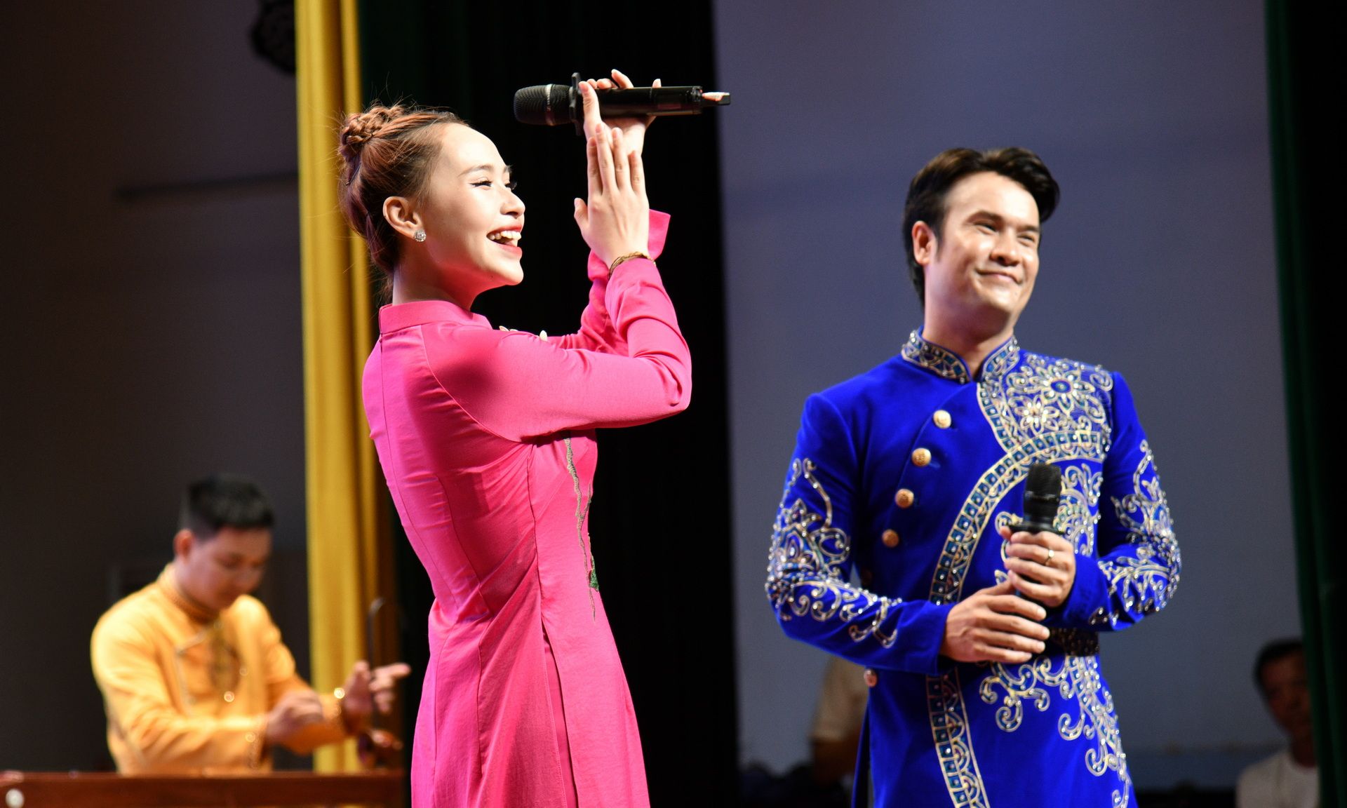 越南艺术家表演男女二重唱结合独弦琴与竹排琴二重唱《越南一游》