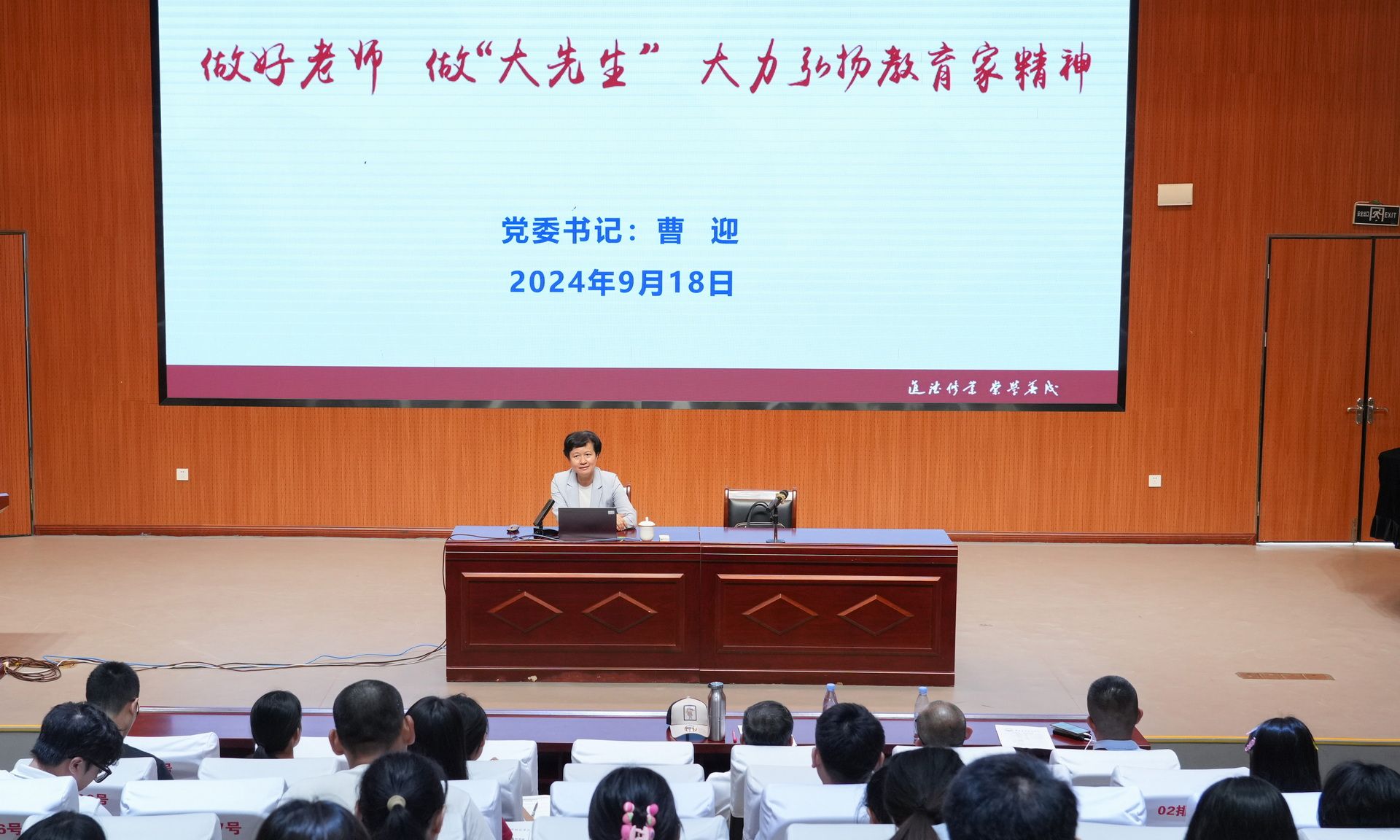 培训上,曹迎以《做好老师 做“大先生” 大力弘扬教育家精神》为题,结合习近平总书记对教育尤其是教师的重要论述,深入剖析了师德内涵,强调了师德的系列要求,分析了新时代师德师风面临的挑战,提出了新时代师德师风建设实践路径。鼓励新入职教职工弘扬教育家精神,肩负起为党育人、为国育才的神圣使命,不断增强自身综合素质与水平,争当新时代“四有”好老师。