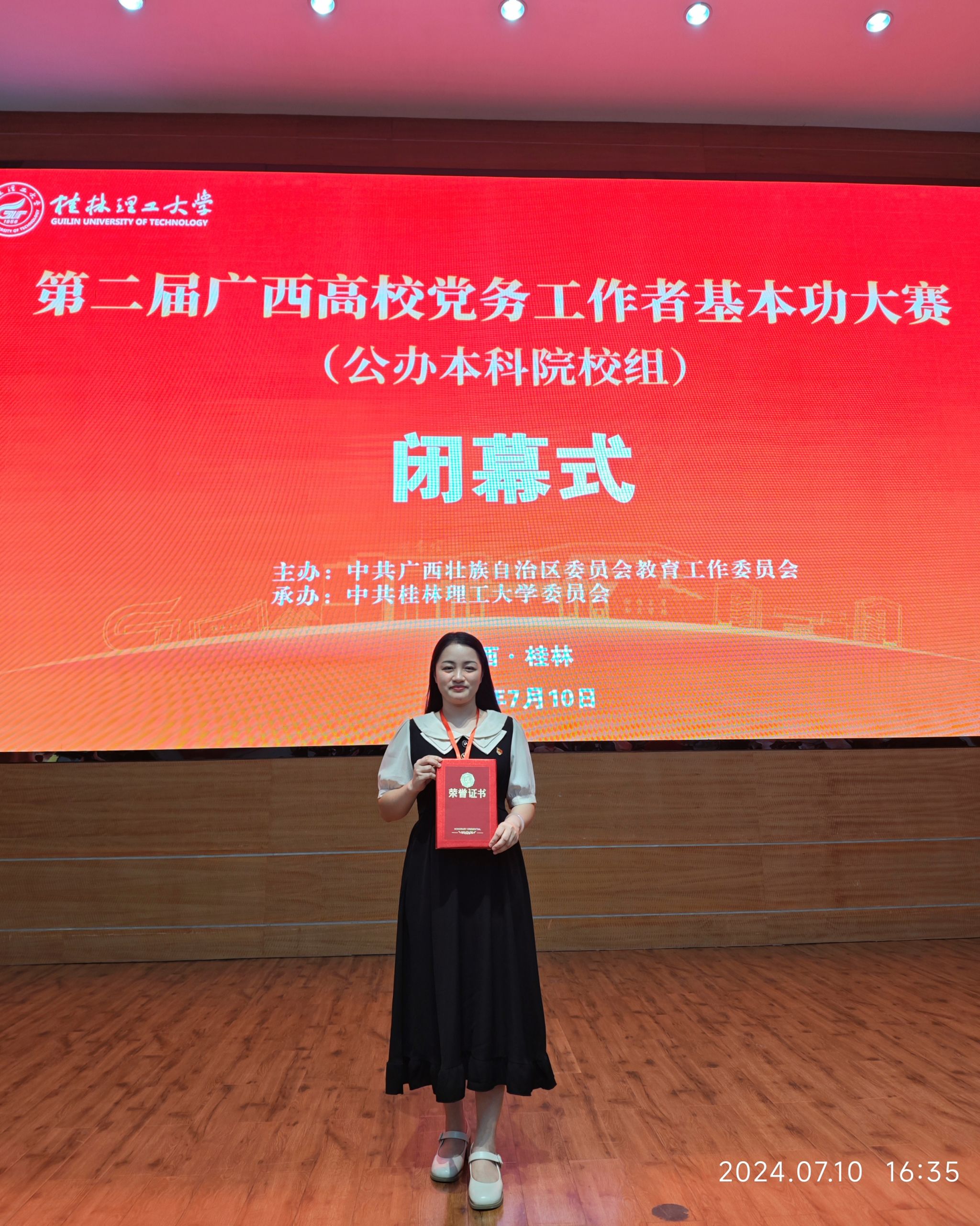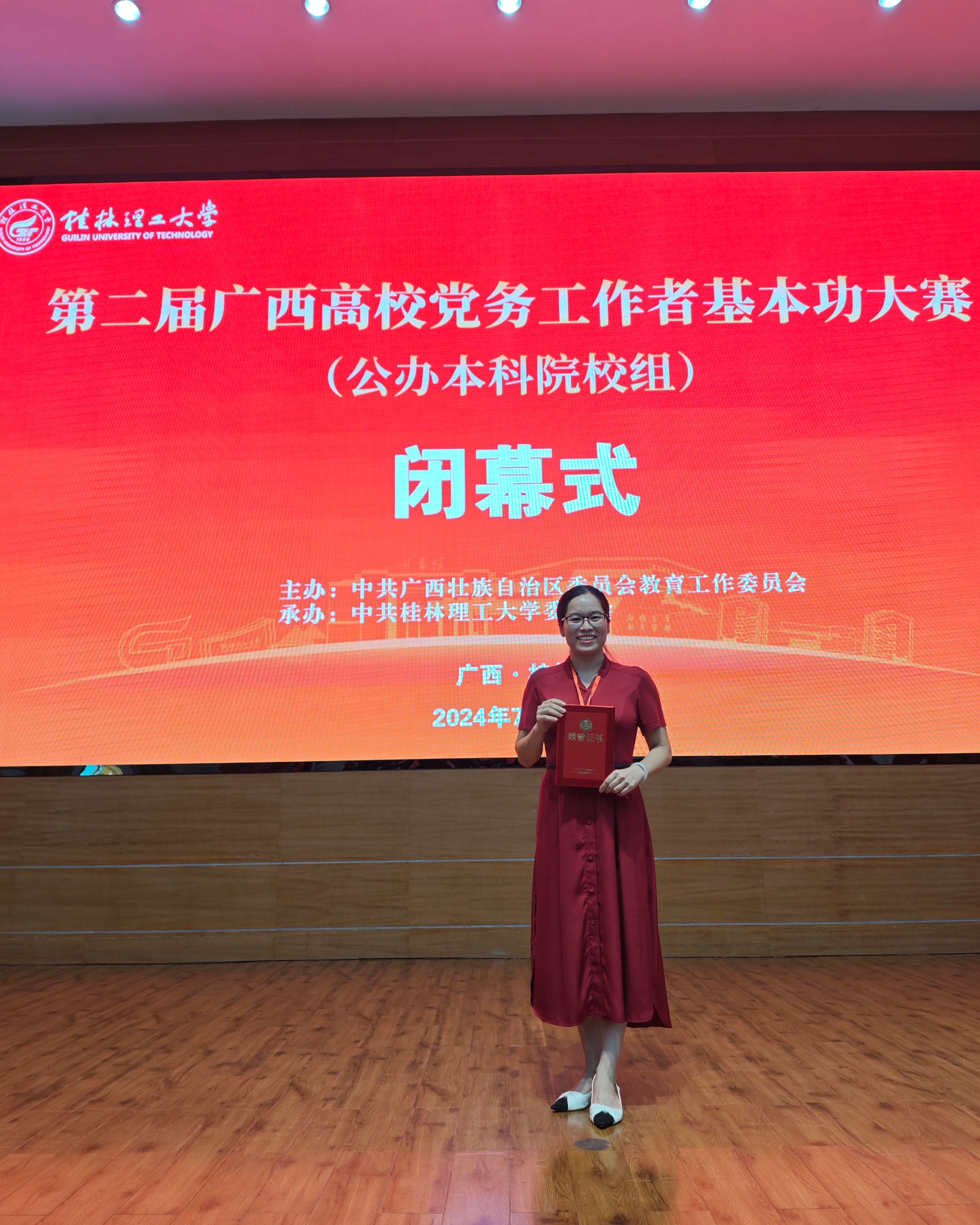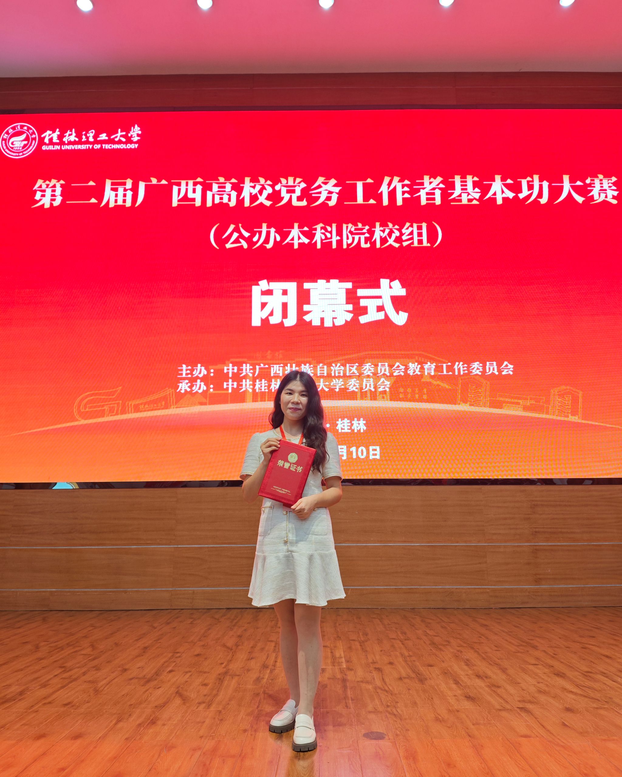 7月10日,由自治区党委教育工委主办的第二届广西高校党务工作者基本功大赛(公办本科院校组)在桂林理工大学落下帷幕。经过激烈的角逐,我校选派的三位选手夺得1个一等奖和2个二等奖。其中艺术学院专职组织员张亚荣获专职组织员组一等奖、直属机关第五党支部书记梁洁荣获教师党支部书记组二等奖、文学与传媒学院第二学生党支部书记梁煖婷荣获学生党支部书记组二等奖。