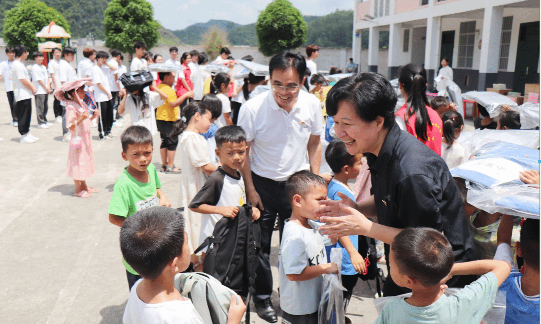 为庆祝“六一”国际儿童节,学校领导给帮扶村的孩子们送去了节日的祝福和礼物。在贵合小学,曹迎参加了少年先锋队新队员入队仪式,少先队员为她佩戴了红领巾;学校向小学生捐赠了校服、书籍、书包等物品;学生工作部开展“红色育人 温暖愈心 向光而行”资助育人主题活动;校团委组织我校大学生艺术团开展文艺表演。在福利小学,校领导向学生们捐赠了书包、书籍等物品,数理与电子信息工程学院创新科普团队和人工智能俱乐部为福利小学的小朋友们带来了人工智能科普教学课和趣味科普表演;学生工作部组织学生资助大使宣传各项资助政策,解读5年过渡期内帮扶对象子女就读我校减免学杂费的政策。