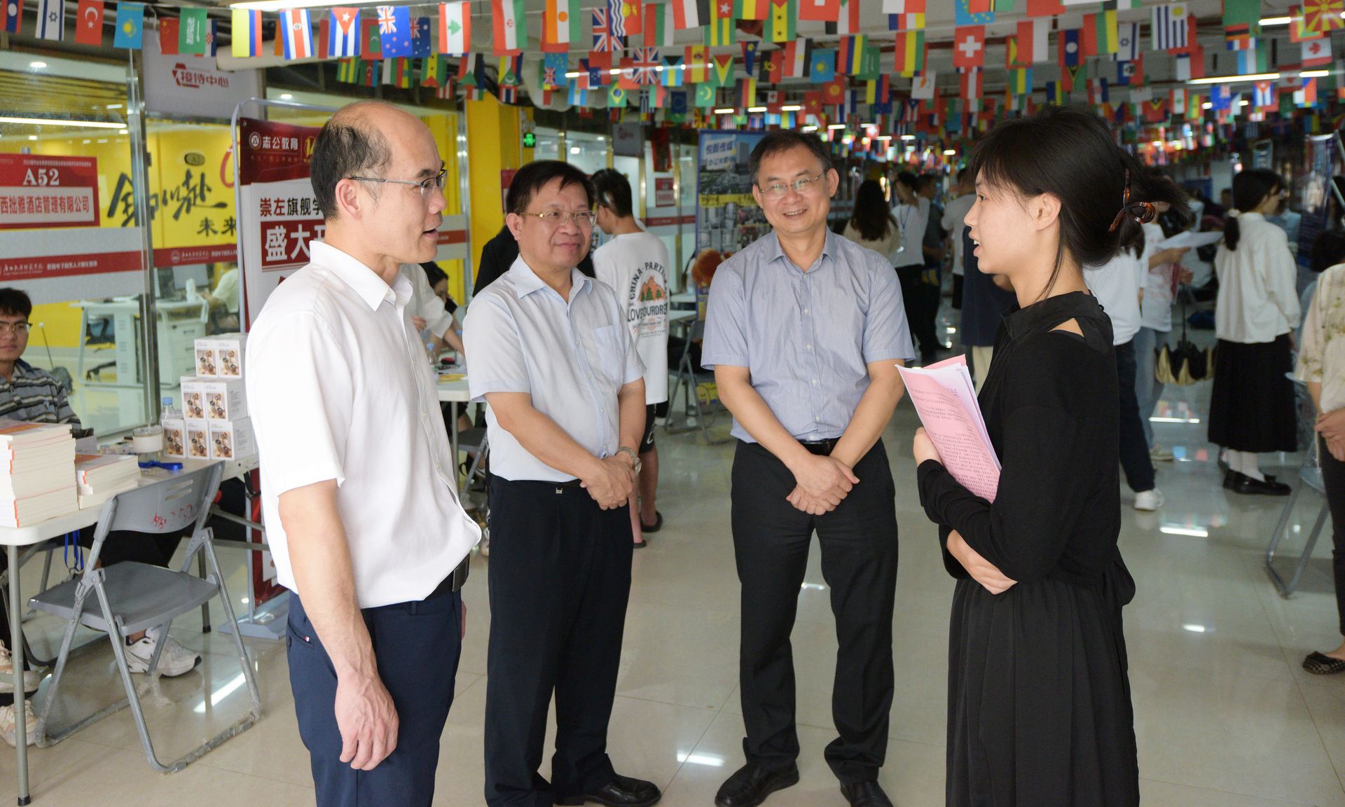 学校领导对招聘会十分重视,校长马宁、校党委副书记韦永恒、副校长郑振锋等校领导来到双选会现场,了解用人单位招聘及毕业生求职情况,校领导与企业代表进行深入交流,认真了解企业目前招聘的岗位及毕业生应聘情况,希望用人单位能吸纳更多的我校优秀毕业生。校领导还现场鼓励毕业生要树立先就业再择业的理念,以积极的心态参加应聘,争取早日找到满意的工作。