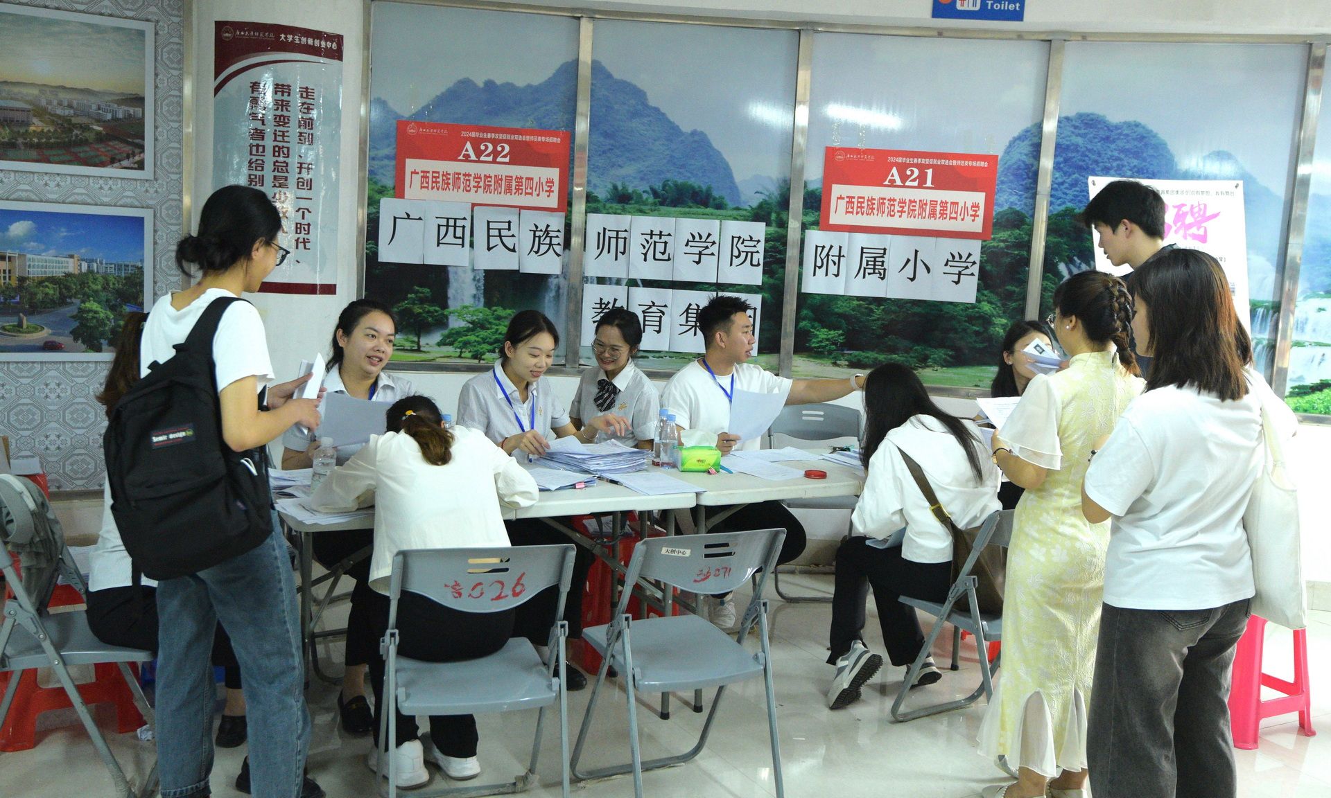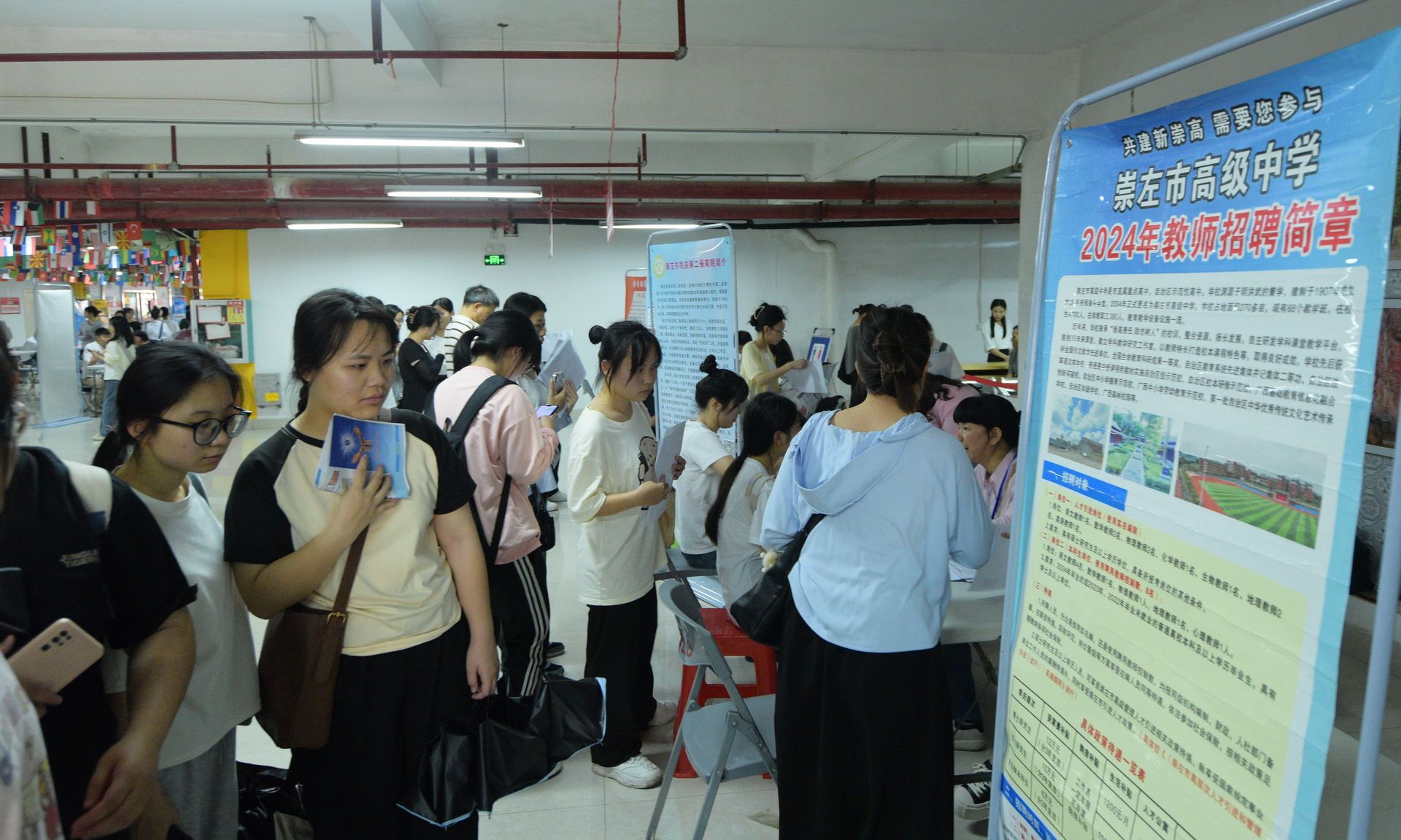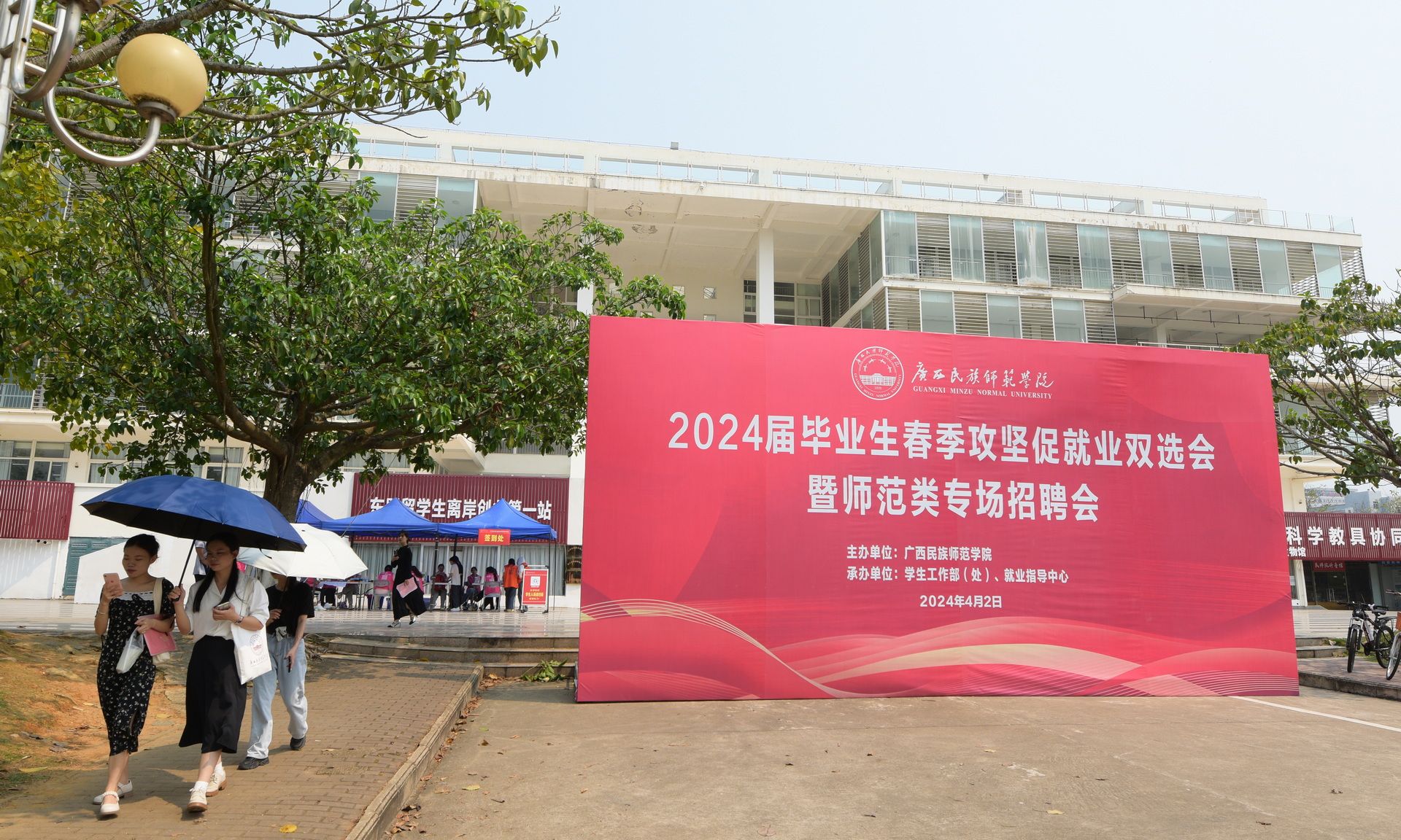 为全面贯彻落实党中央、国务院“稳就业、保就业”决策部署,促进我校毕业生高质量充分就业,4月2日,我校在图书馆负一楼举行2024届毕业生春季攻坚促就业双选会暨师范类专场招聘会。来自区内外的66家用人单位提供近4000个就业岗位,吸引我校及崇左市附近高校1000多名毕业生到场参加。