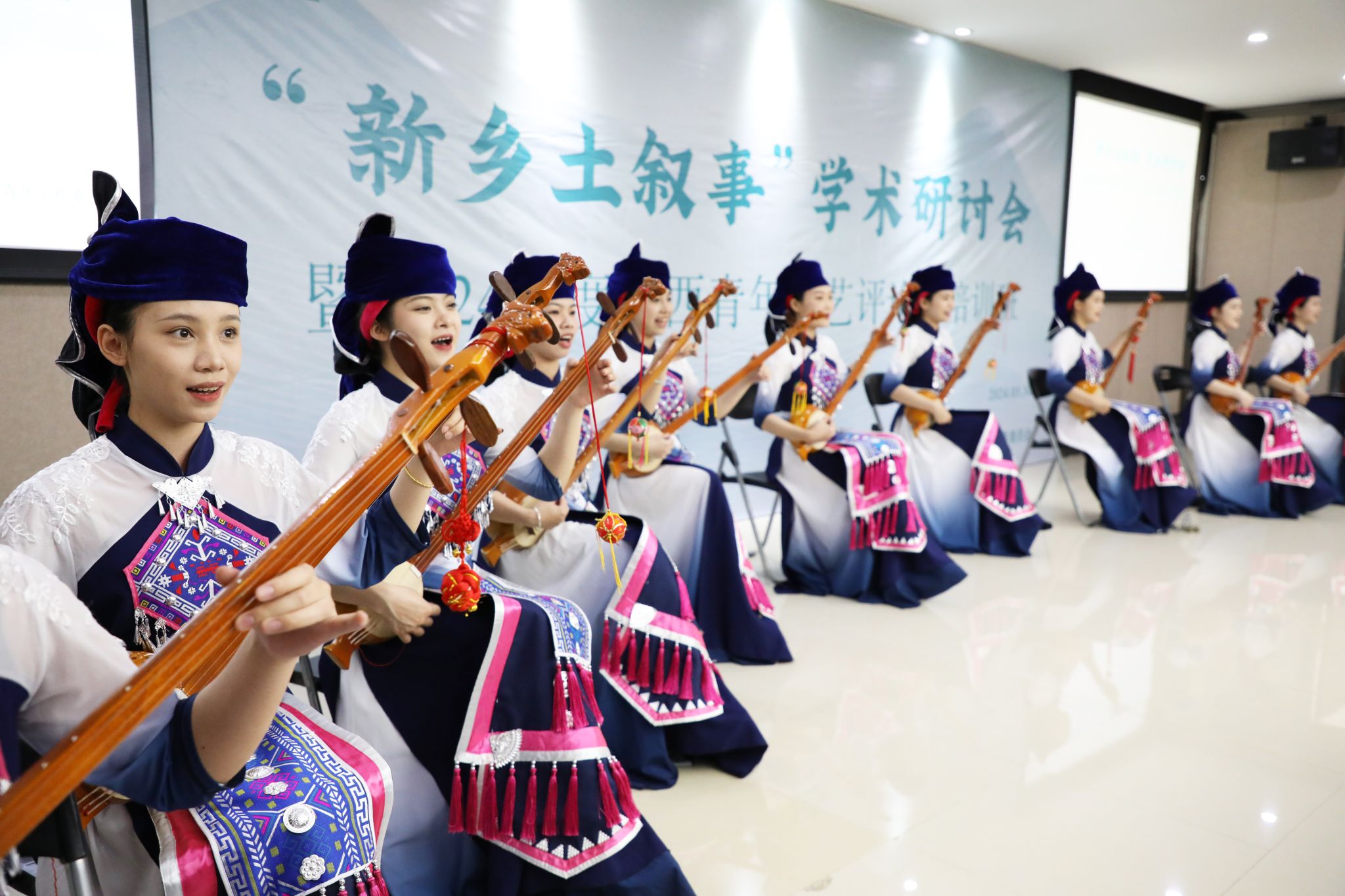开班仪式结束后,艺术学院学生为在场的专家学者表演了《花山迎客歌》和《天琴姑娘》的天琴弹唱。