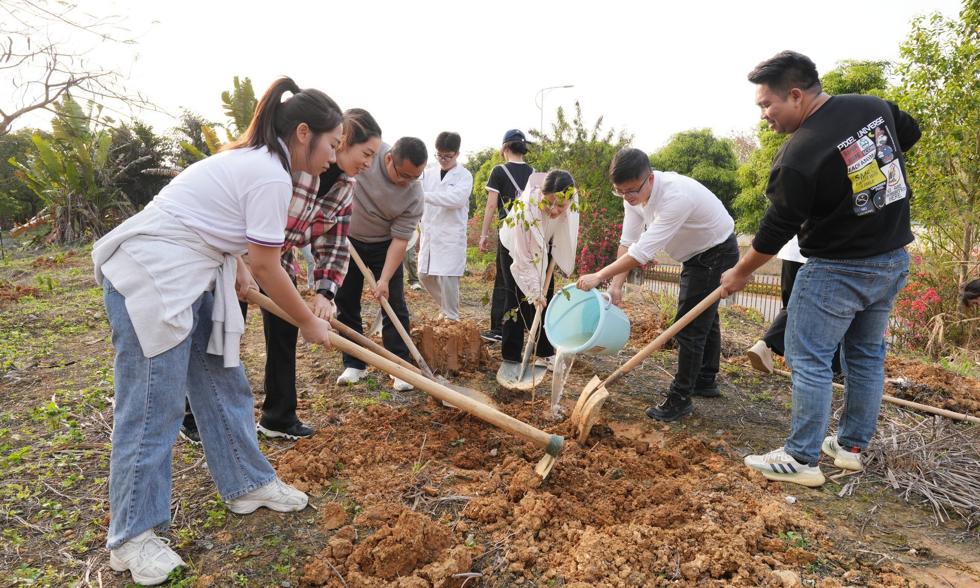 3月12日,正值全国第46个植树节,当天下午,校长马宁、校党委副书记韦永恒、副校长韦茂斌、校团委全体成员与大学生志愿者一起前往崇艺楼北侧开展2024年春季义务植树活动。
