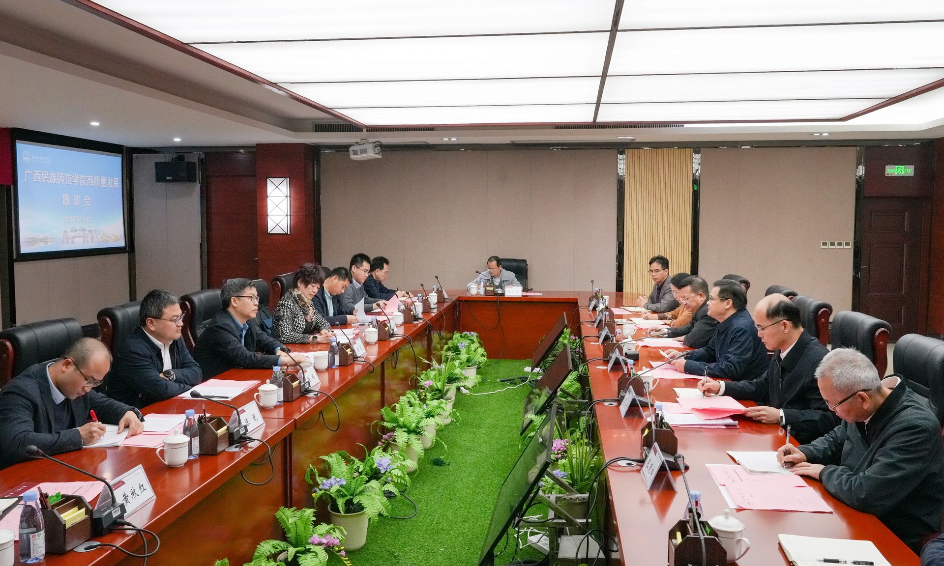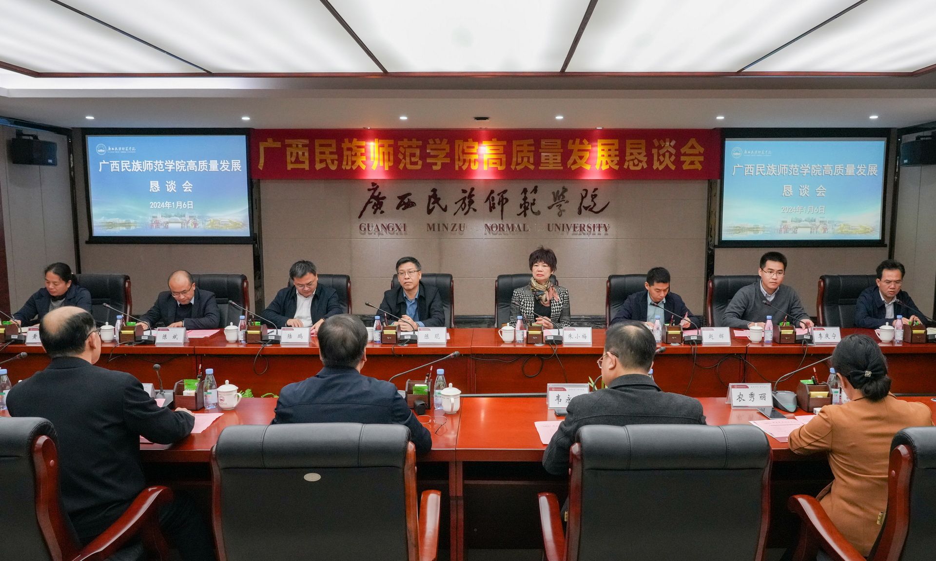 1月6日,我校在崇智楼二楼报告厅召开高质量发展恳谈会,邀请自治区和崇左市有关单位的领导、专家为我校高质量发展建言献策。学校全体校领导,各职能部门、二级学院主要负责人参加会议。会议由校长马宁主持。