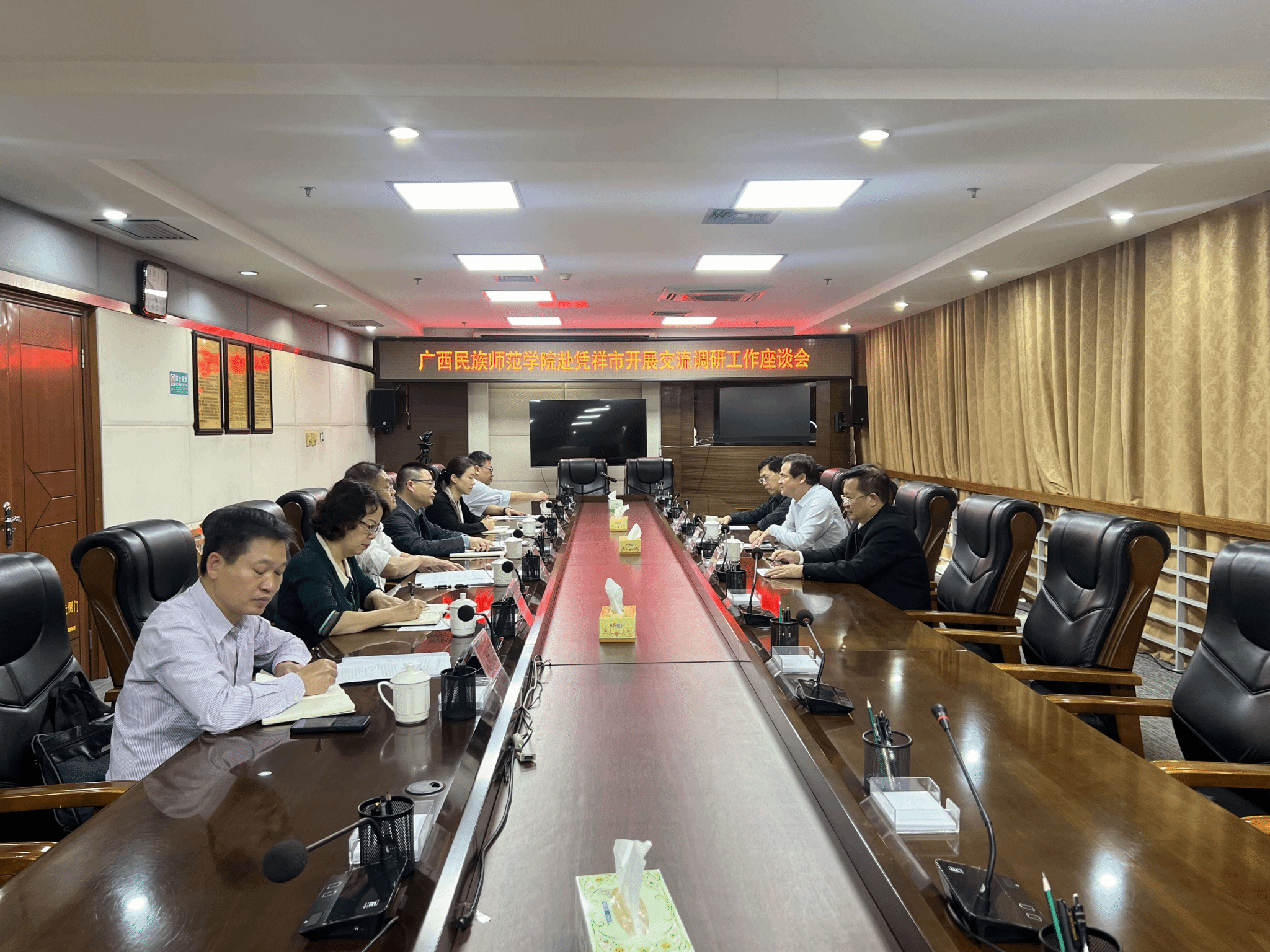 座谈会上,梁远海介绍了学校历史沿革,近年来学校在党的建设、人才培养、学科建设、挂点帮扶等方面开展的情况。罗国谣对梁远海一行表示诚挚的欢迎,对我校重视乡村振兴工作,输送优秀的挂职干部助力凭祥发展表示由衷感谢,并表示希望推动校地双方更高层次、更广领域的合作,形成更紧密的深度合作关系,实现校地合作共赢。