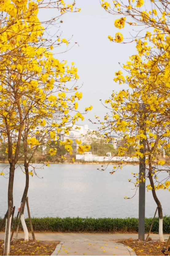 金橙相间,缀满草坪小径