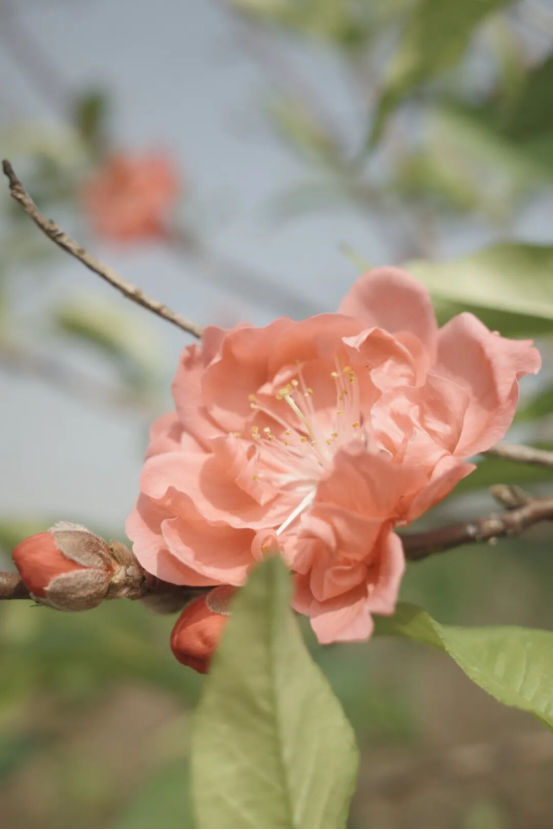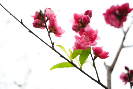 碧桃缀着嫩粉花苞