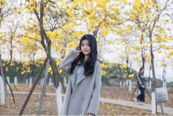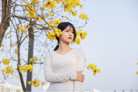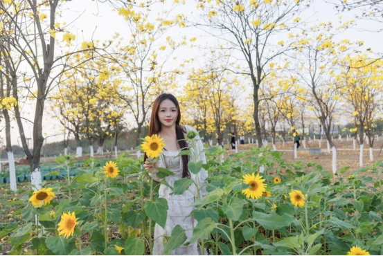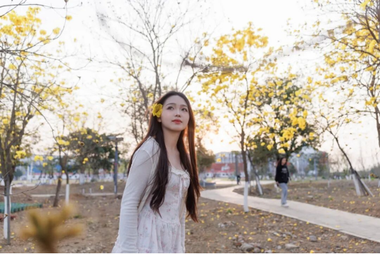 青春身影与繁花相映