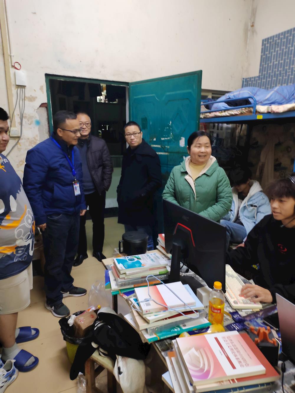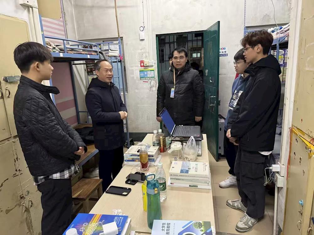 梁朝益带队深入商学院学生宿舍,仔细检查宿舍设施,耐心解答学生们的疑问,叮嘱学生们要保持宿舍卫生,共同营造安全、健康、和谐的学习生活环境。
