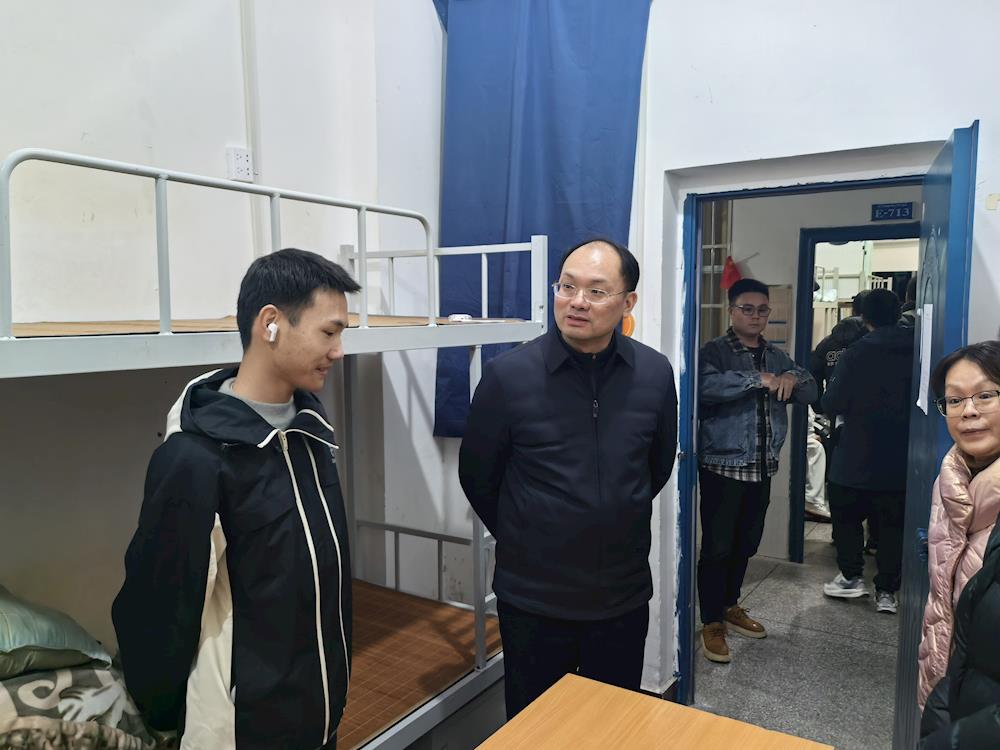 黄耀带队深入机电工程学院宿舍。在走访过程中,黄耀亲切地与同学们交流,让同学们感受到了学校的温暖关怀。