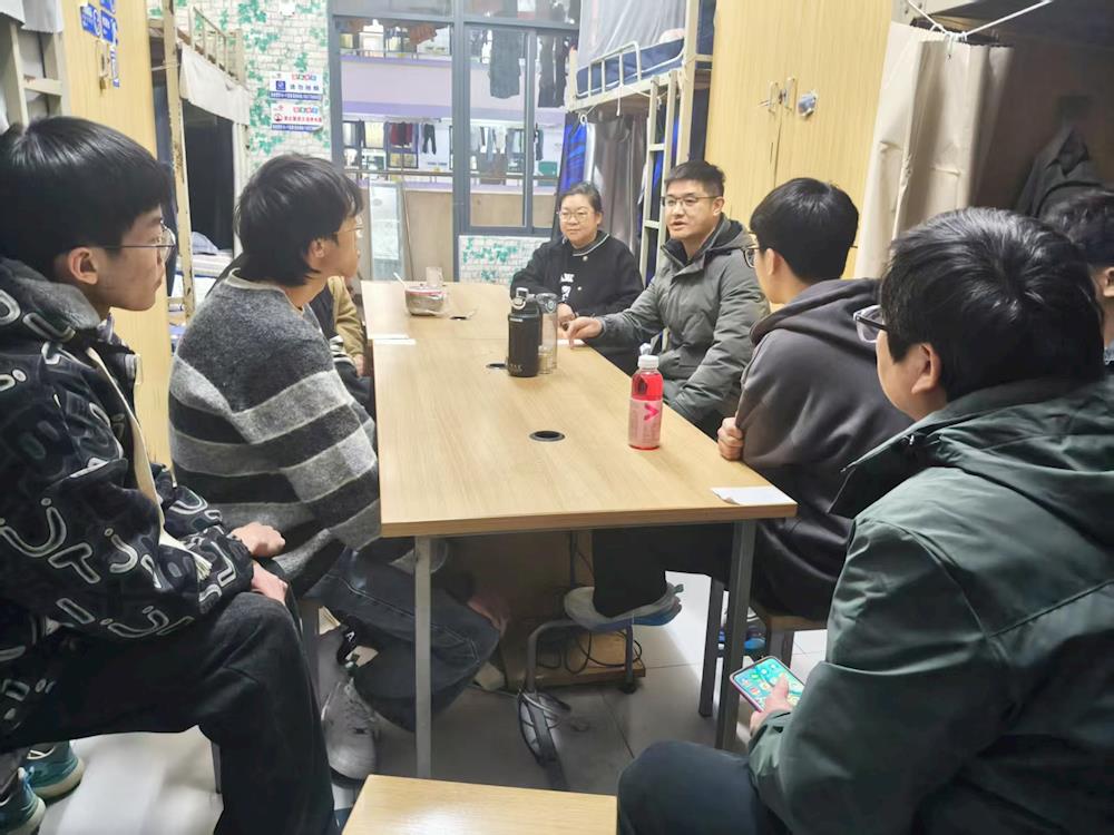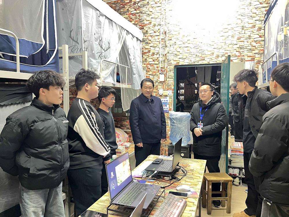 张斌带队走访信息工程学院学生宿舍。他勉励同学们在新学期要树立远大目标,以积极进取的姿态迎接挑战,注重专业学习与创新实践相结合,提升综合能力。张斌还提醒同学们增强安全意识,注意宿舍用电安全,保持环境整洁。