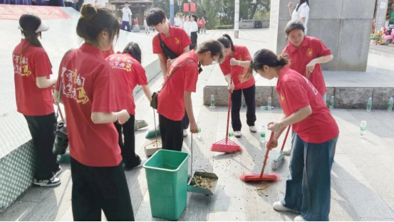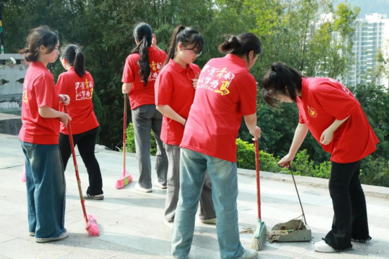 祭奠仪式结束后,大家主动拿起扫帚、抹布等清洁工具,分组对烈士陵园进行清扫。同学们认真清扫着陵园小径上的落叶、杂物。大家专注而虔诚,不放过任何一个角落。清扫活动不仅是对陵园环境的净化,更是同学们以实际行动表达对英烈的敬重与缅怀,守护英烈长眠的净土。