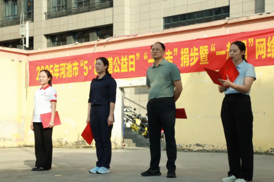 2025年4月25日下午,广西现代职业技术学院田径场上,由共青团河池市委员会、河池市红十字会主办的“5・8 人道公益日”“一块走”捐步暨“一起捐”网络募捐活动顺利举行。共青团河池市委员会书记孙瑞、河池市红十字会秘书长张敏、学院副校长杨奎及2000 名师生代表共同参与,以脚步丈量爱心,用行动践行公益。