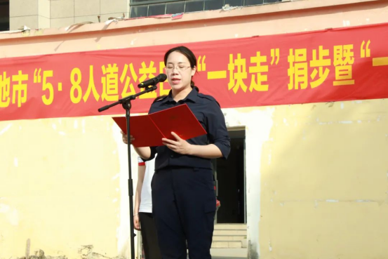 活动在杨奎副校长的致辞中拉开帷幕。他指出,此次活动既是践行“人道、博爱、奉献”红十字精神的实践课堂,更是“思政 + 公益”的生动融合,鼓励同学们通过捐步传递温暖,将“日行万步”的坚持转化为“日善存心”的信念,在公益实践中书写青年责任底色。随后,河池市红十字会秘书长张敏在讲话中强调,“一块走”活动通过日常步数汇聚爱心力量,转化为善款帮助困境群体,是青年学子践行社会责任的重要途径,希望同学们以行动传承红十字精神,为公益事业注入青春动能。