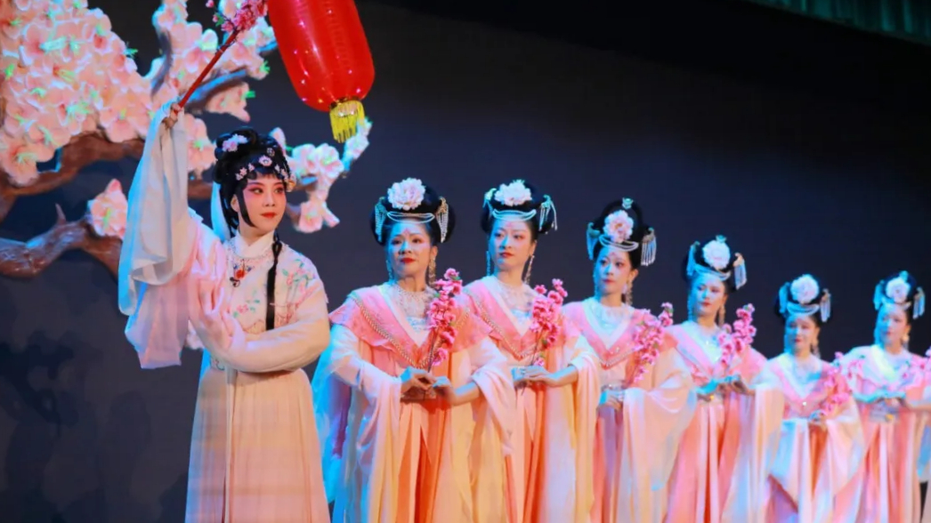 演出现场气氛热烈,掌声不断。桂剧《人面桃花》以唐代诗人崔护《题都城南庄》为蓝本创作,讲述了一段跨越千年的浪漫爱情故事。作品既保留了传统戏曲“以诗传情”的艺术特色,又创新融入现代戏剧表现手法,以优美动人的唱腔、唯美精致的舞台呈现,为现场观众带来高水准的艺术享受。
