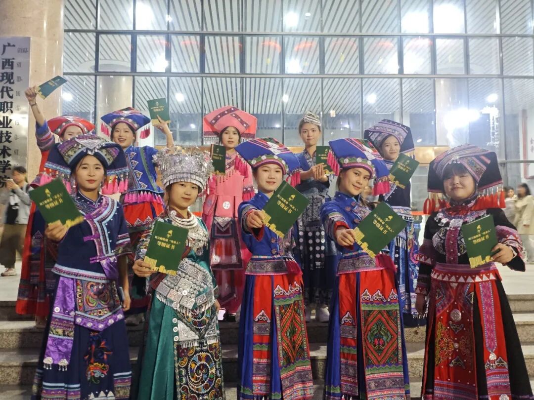 仪式伊始,学校学工处副处长黄璇老师宣读了荣获第一批刘三姐歌谣“传承人”初级证书的学生名单。这份名单,是热爱的见证,更是传承的起点,标志着“刘三姐歌谣”的火种正式传递到了新一代学子的手中。
