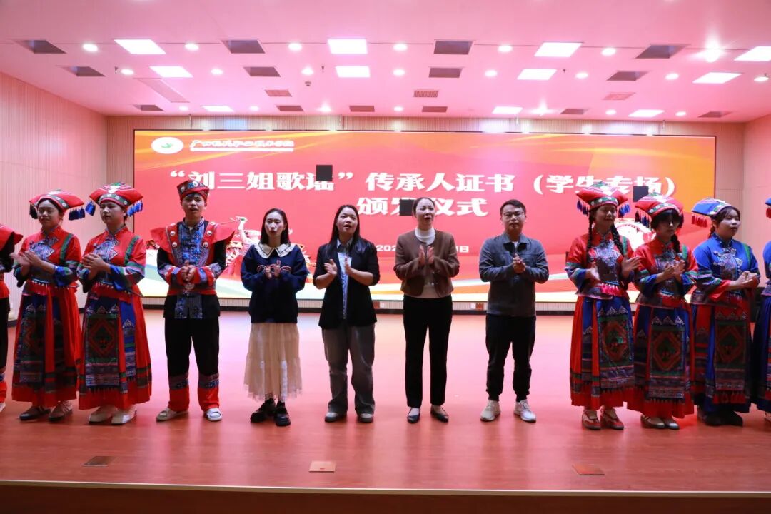 薪火相传!我校举行“刘三姐歌谣”传承人考核暨初级证书颁发仪式,41名学子喜获认证
