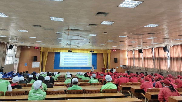 后勤管理处在即将开学之际,组织校内食堂管理人员、从业人员、师生代表近400人开展传染病防控、食品安全、消防安全、生产安全及营养健康知识培训。专门邀请了专业培训机构教师、消防救援中队领导就《中华人民共和国食品安全法》《中华人民共和国消防法》《中华人民共和国安全生产法》《学校食品安全与营养健康管理规定》和《餐饮服务食品安全操作规范》等相关法律法规进行授课培训。他们结合案例重点对学校食品原材料采购、查验入库、食品加工、留样、餐饮器具消毒、人员健康管理、消防安全、生产安全、传染病预防及疫情防控期间的食品安全等重点环节、常见问题进行了深入浅出的讲解和现场演示。通过培训,进一步加强食堂从业人员食品安全操作规范,强化食品安全管理人员法律意识、责任意识和安全意识,提高学校食堂食品安全管理水平,保障广大师生饮食安全。