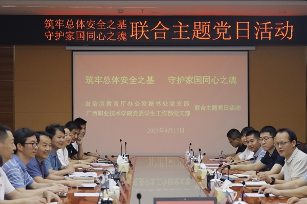 4月17日,自治区教育厅办公室秘书处党支部与学校党委学生工作部党支部联合开展“筑牢总体安全之基 守护家国同心之魂”主题党日活动。学校副校长林松通过对比分析中西文化安全典型案例,深入剖析了当前文化领域面临的风险挑战。在讨论环节,党员教师结合工作实际,就如何将国家安全教育融入日常育人工作建言献策。自治区教育厅办公室秘书处党支部书记黄明宇强调,要筑牢文化安全的思想防线,在育人实践中培育学生的文化自信与价值认同。