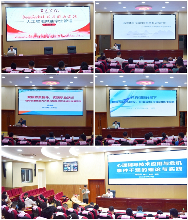 本期培训委托自治区专业技术人员继续教育基地、百色学院红色文化培训学院组织实施,内容涵盖心理危机事件干预、人工智能赋能学生管理、校园舆情处置、教育强国背景下辅导员队伍建设等多个专题。