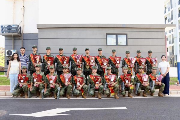 9月13日,南宁市江南区人民政府征兵办公室在南宁市国防教育训练基地举行2025年秋季入伍新兵欢送大会。学校多名优秀应征青年身着崭新军装参加仪式。