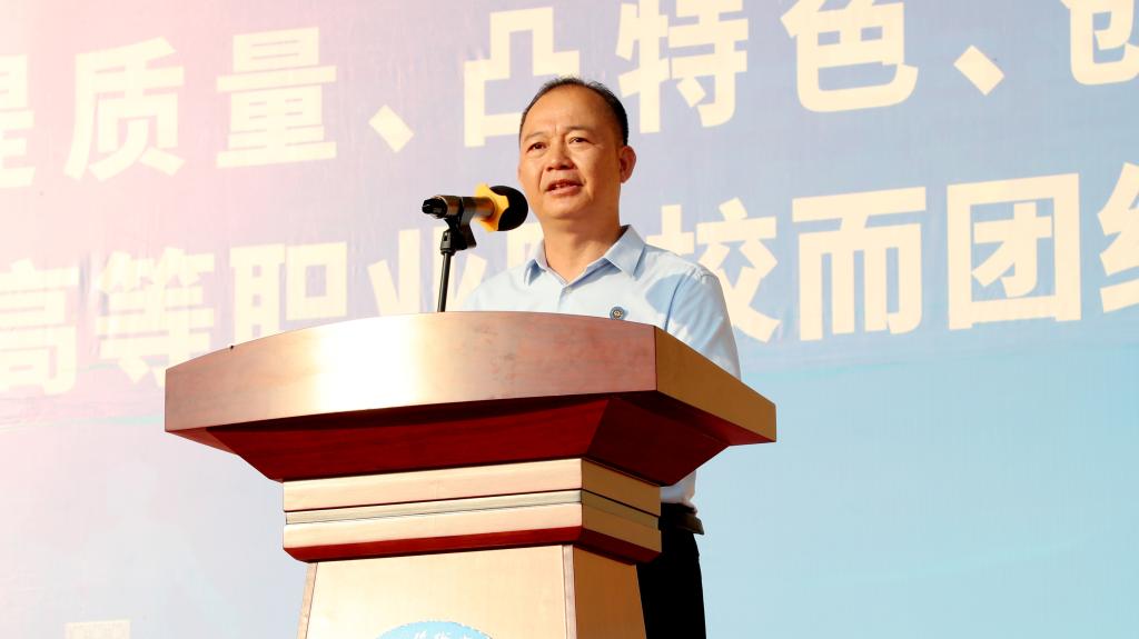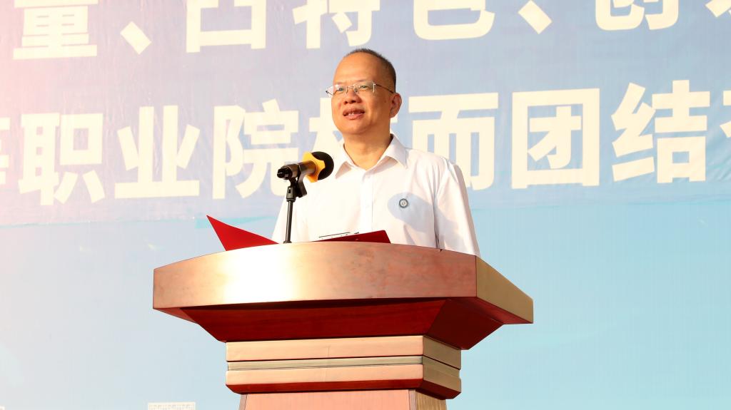 9月8日上午,学校2025年秋季学期开学升旗仪式暨“开学第一课”在学校运动场举行。学校党委书记黄亮出席并讲授“开学第一课”,党委副书记、校长吴炳科主持,校领导章红平、赵骏新、邓喜和、黄荣参加活动。