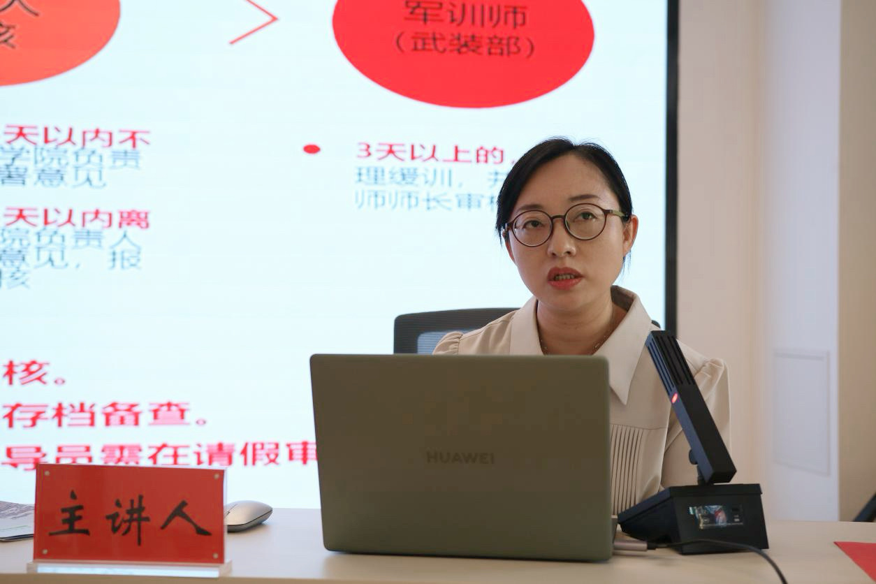 培训聚焦新生管理工作中的重点、难点问题,学工部、大学生心理健康教育与指导中心、保卫处、团委、医疗服务中心、财务处等多个部门进行专项授课,内容涵盖学生心理健康疏导、校园安全管理、共青团工作开展、医疗服务保障、财务缴费指导、学生日常管理规范、思想政治教育、资助政策解读以及国防教育等多个关键领域。