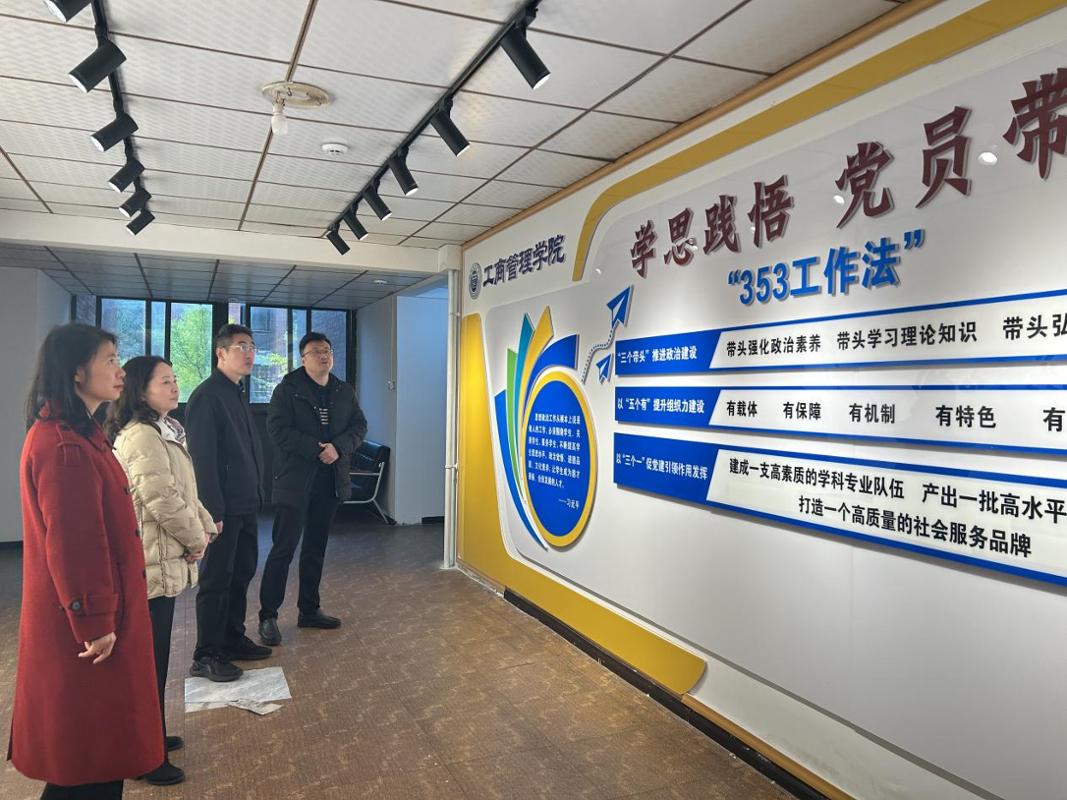 在工商管理学院“一站式”学生社区,杜剑副校长详细查看了学生社区党建展示墙、社区“一线规则”、一站式社区活动风等功能区域的建设布局,认真听取了杨阳书记关于社区“思政+”育人模式落地、“353”工作法以及“兵锋”校园志愿服务队活动开展等工作汇报。杜剑副校长对学院依托社区平台整合育人资源的做法表示肯定,强调要充分发挥学校作为全国示范“一站式”学生社区的建设优势,持续深化“示范型、服务型、成长型、协同型”四型社区建设,让思政教育更贴近学生、服务更精准高效。