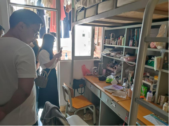 检查过程中,谭宇欣副处长重点强调用电安全规范,提醒同学们强化消防安全意识,同时倡导大家合理安排课余时间,积极参与校园活动,培养健康生活方式。谢家俊老师结合春季传染病防控要求,指导学生做好垃圾清理、积水清除等卫生管理工作。检查组逐间走访宿舍,对违规电器、线路老化等安全隐患进行登记,现场开展安全教育,并建立“问题-责任-时限”整改台账,确保隐患闭环管理。
