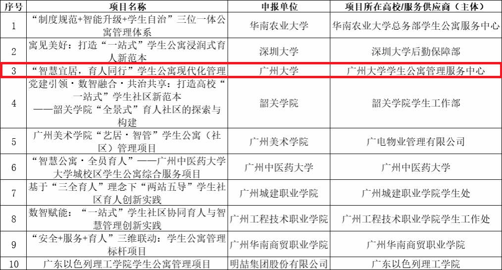 2025广东高校后勤学生公寓管理示范项目获奖名单