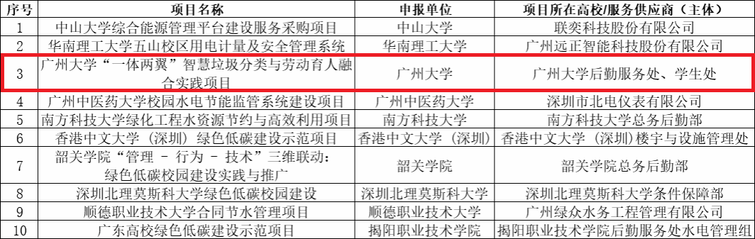 2025广东高校后勤绿色低碳建设示范项目获奖名单