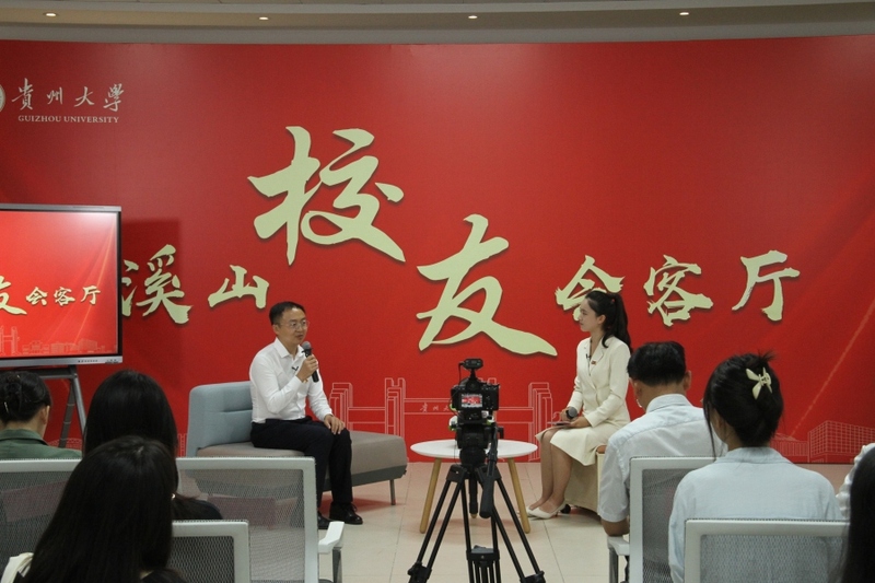 交流结束后,高安勤做客《溪山校友会客厅》栏目接受访谈。节目中,他向学子们分享了自己扎根基层从事农业与乡村振兴工作的点滴经历,并深情谈到:“在贵州大学求学期间厚植的为民情怀,正是支撑我多年扎根基层、深耕乡村振兴事业的源泉与动力。唯有将所学所得付诸实践,才能真正实现科研的价值。”