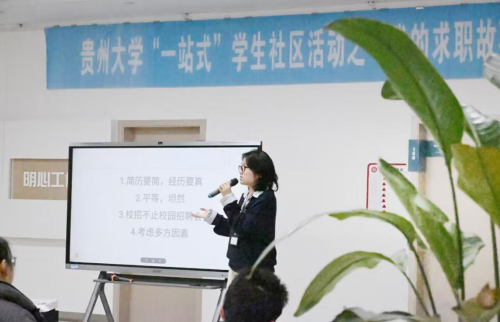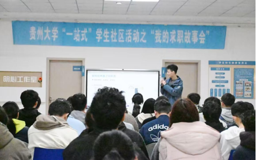 为切实做好学生就业指导工作,助力学子明晰求职方向、积累求职经验,推动就业育人资源深度下沉学生社区,贵州大学“一站式”学生社区于3月24日中午在西校区知新楼大厅成功举办“我的求职故事会”分享活动,邀请了4位优秀毕业生进行分享,为同学们送上满满的求职“干货”。