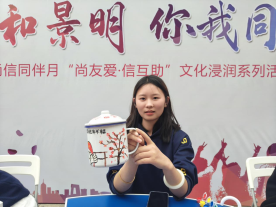 活动现场,“红色记忆搪瓷杯”彩绘区充满了创意与热情。60名同学自愿参与,手持画笔在白色搪瓷杯上精心创作。他们围绕红色精神,绘制出一幅幅积极健康的图案,将对先辈的敬意与传承红色基因的决心融入其中。彩绘完成后,同学们带着自己的作品满意而归,这些搪瓷杯不仅是精美的纪念品,更是红色精神的承载物。