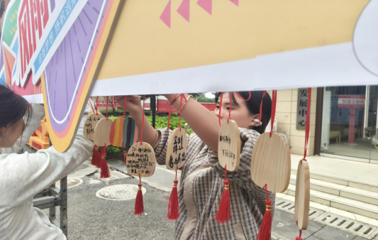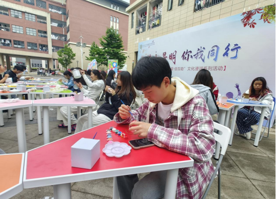“风铃随风响 梦想已起航”区域洋溢着青春的活力。两两结伴的同学们共同制作DIY风铃,现场欢声笑语不断。在合作过程中,同伴之间的情谊愈发深厚。制作完成后,大家相互赠送风铃,让承载着梦想与友爱的风铃声在社区中回荡。