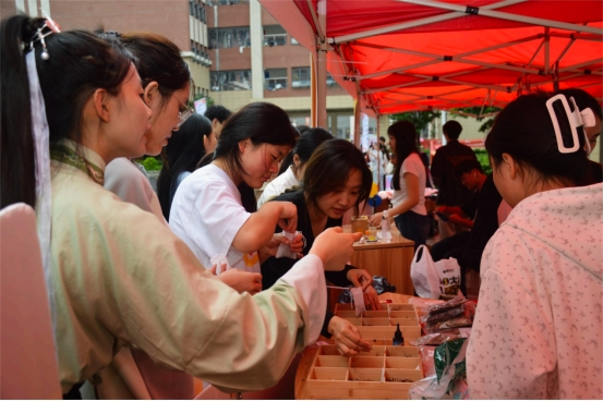 此外,嘉年华现场还设置了社团游戏互动区、手工制作区域,每个摊位前都门庭若市;美食摊位上,饮料、零食琳琅满目,为这场狂欢增添了一抹烟火气息。