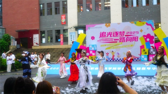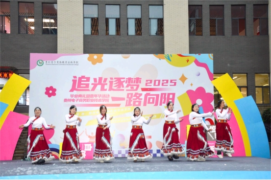 之后的自由表演环节更是将舞台变成了毕业生们的主场。不少同学自发走上舞台,有的弹着吉他自弹自唱,用歌声诉说对母校的不舍;有的表演即兴舞蹈,用肢体语言释放青春活力。舞台下,同学们围成一圈,挥舞着双手,为表演者欢呼鼓劲,整个场地变成了欢乐的海洋。