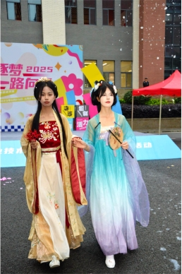 在嘉年华的核心舞台区,10个学生社团轮番登场,用精彩表演点燃全场热情。动漫社以活力四射的宅舞开场,夸张的服饰、动感的节奏瞬间吸引全场目光;华服社的汉服走秀则宛如穿越千年,广袖流仙的服饰与古典配乐相得益彰,尽显中华传统美学魅力;音乐社带来的歌曲串烧,用充满故事感的旋律唱出青春的迷茫与坚定,引发全场大合唱;跆拳道社的实战表演刚劲有力,腾空踢板的瞬间,掌声与惊叹声此起彼伏;舞蹈社的热辣舞蹈,更是嗨翻现场,带领大家舞动起来,释放着青春的朝气……