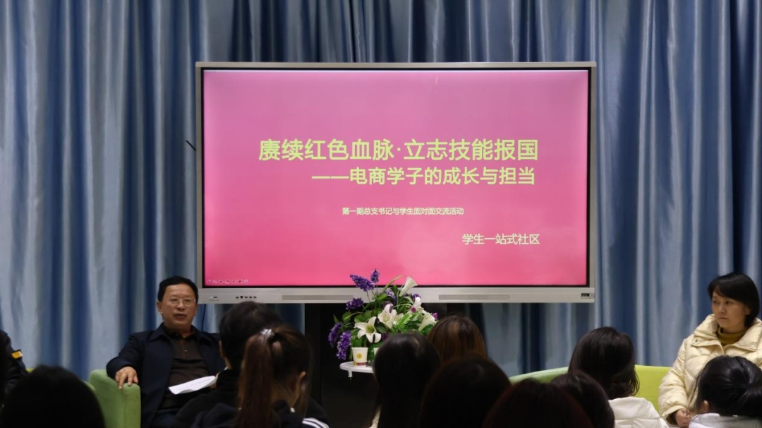活动最后,邹江勇书记以“续红色血脉·立志技能报国——电商学子的成长与担当”为主题作总结发言,希望同学们主动打破信息壁垒,善用学校资源,尽快适应并规划好大学生活,为未来社会角色做好充分准备。