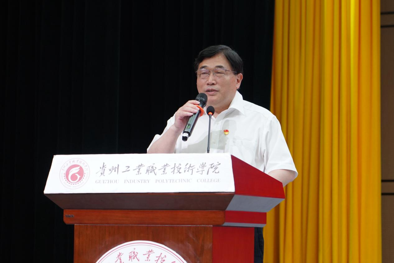 蔡书记结合学院实际,以学院优秀毕业生的成长轨迹为切入点,讲述“一专多能、全面发展”如何助力工职院学子实现人生价值。通过志愿服务精神、体育竞技精神,以及学生参演的大型歌舞诗剧《颂军魂》、融媒·音乐节等校园文化活动成果展示,生动诠释了新时代青年“技能报国”的使命担当与“美育浸润”的成长路径,以及工职院学子展现出的“忠诚坚定、阳光自信、身手敏捷、体魄健康、团结协作、血性担当”24字学子品格。