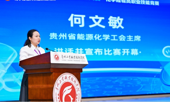 贵州省能源化学工会主席何文敏在讲话中指出,本次竞赛旨在选拔优秀选手参加全国首届化工和医药行业化学分析工职业技能竞赛,营造“比学赶超”氛围。她强调,要以大赛为契机弘扬工匠精神,助力贵州“四新”“四化”战略实施,为能源化工产业高质量发展提供人才支撑。随后,何文敏主席宣布竞赛正式开幕。